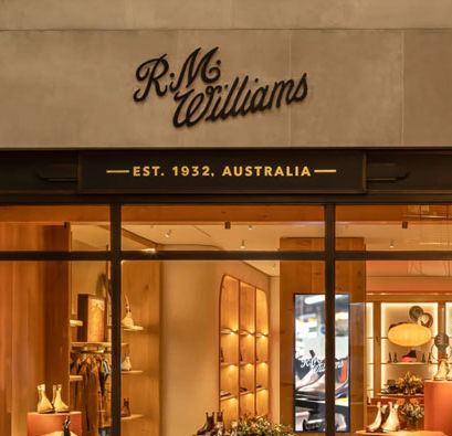 R.M Williams gold leaf shop fascia in Bath, Cambridge, London and Guildford.
